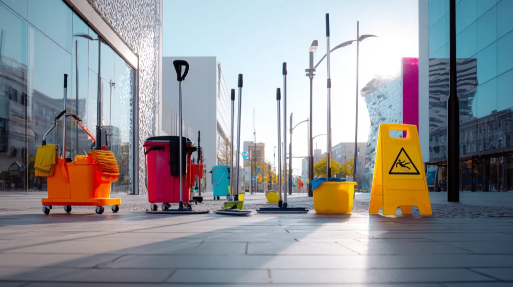 Unsere Dienstleistungen umfassen Bodenreinigung, Desinfektion von Sanitärbereichen, Pflege von Möbeln und Glasflächen sowie Abfallentsorgung.